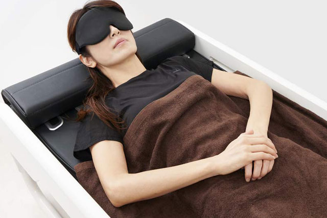 「アテラリバイタルベッド」に横たわるとまるで宇宙空間に入り込んだかのような心地よい感覚が体中を廻ります。